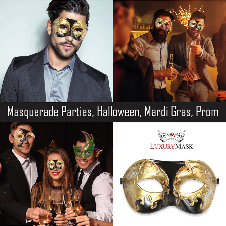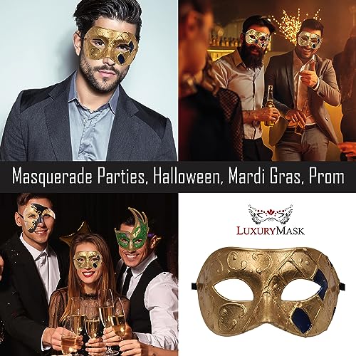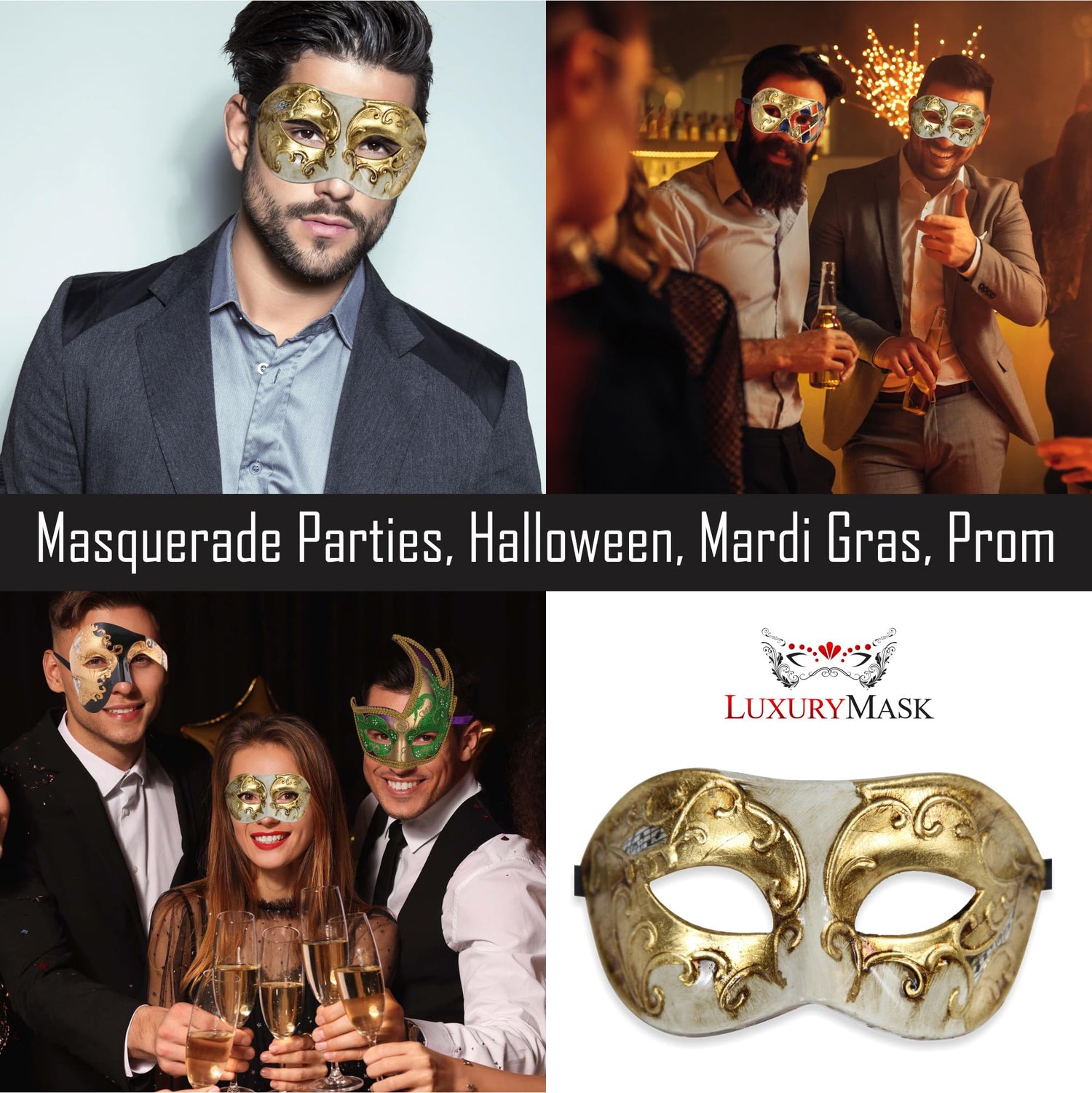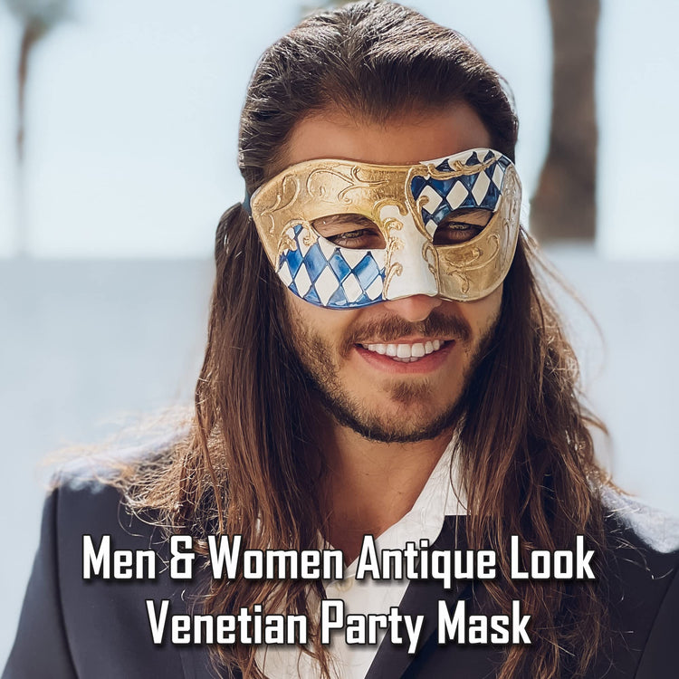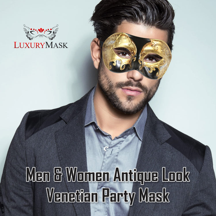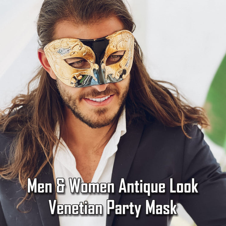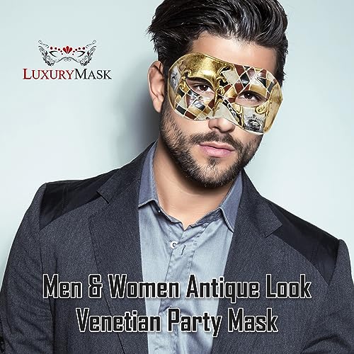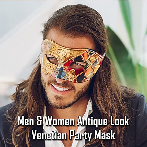Masquerade Mask for Men - Antique Look Mask for Halloween, Venetian Party, Masquerade Party, Mardi Gras, & Prom