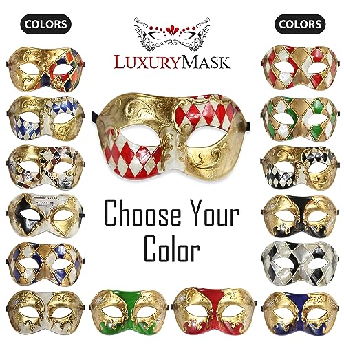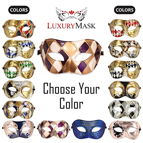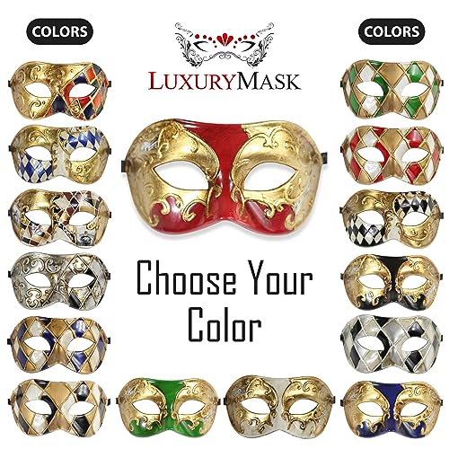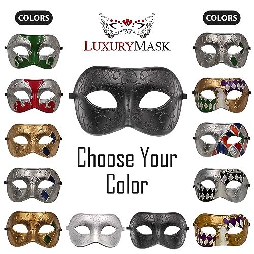 • CHOOSE FROM VARIOUS DESIGNS: No two masks are the same with Luxury Mask because we know that choice is important. That’s why our premium series includes 15 different color schemes and styles, so you can let your personality shine through your costume.