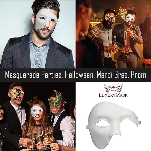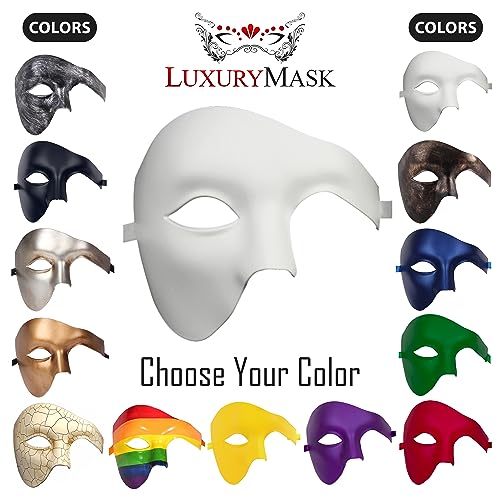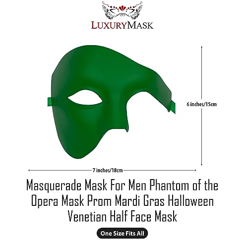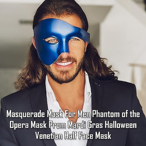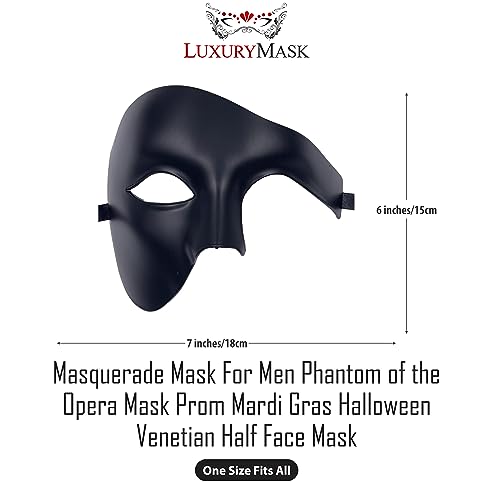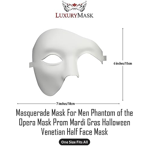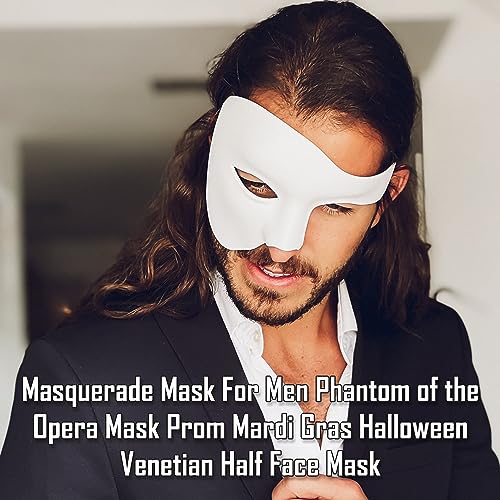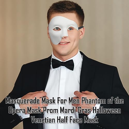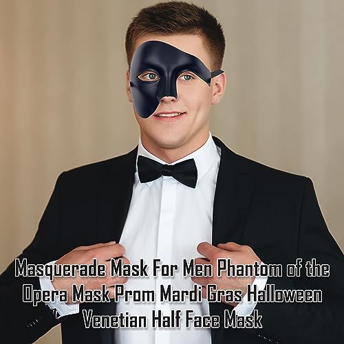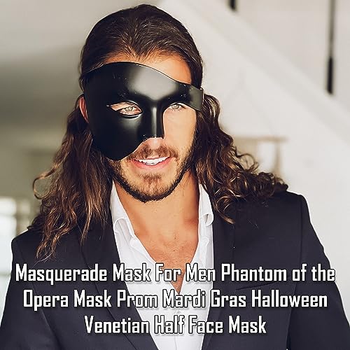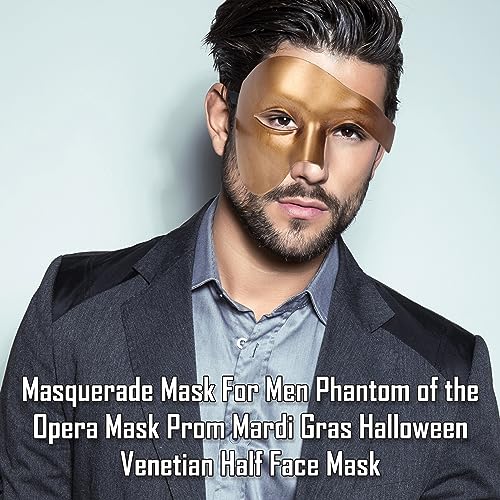 - Elegant Design: This Half Face Mens Masquerade Mask features a classic and elegant design that is inspired by the Phantom of the Opera.The mask features a half-face design, covering the upper part of the face while leaving the lower part exposed