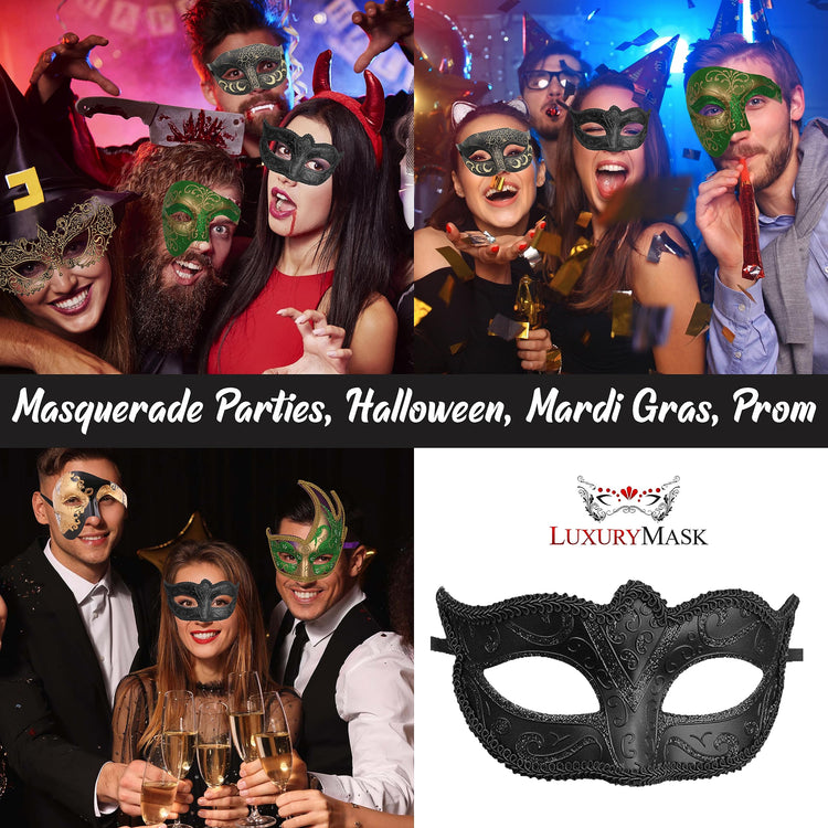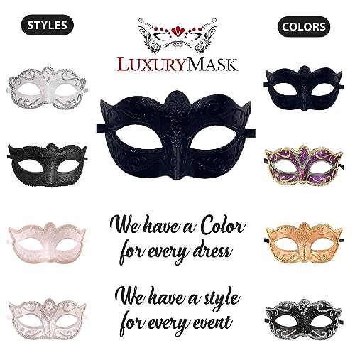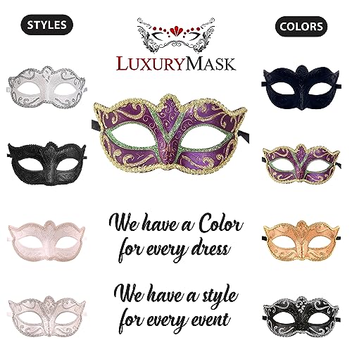 - RANGE OF COLORS AVAILABLE: Whatever style mask you are looking for, find it at the Luxury Mask store. Our range includes various styles, from detailed gold, purple, and green designs to classic black or white.