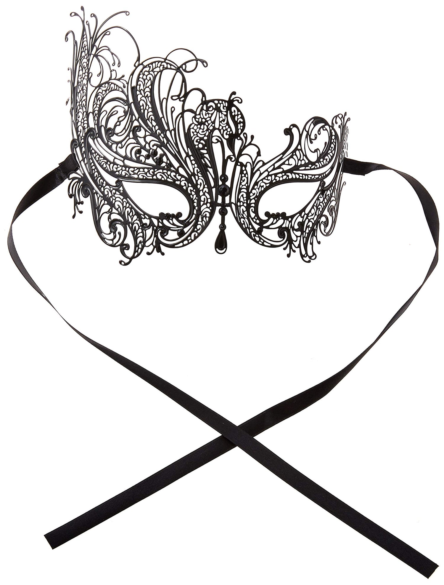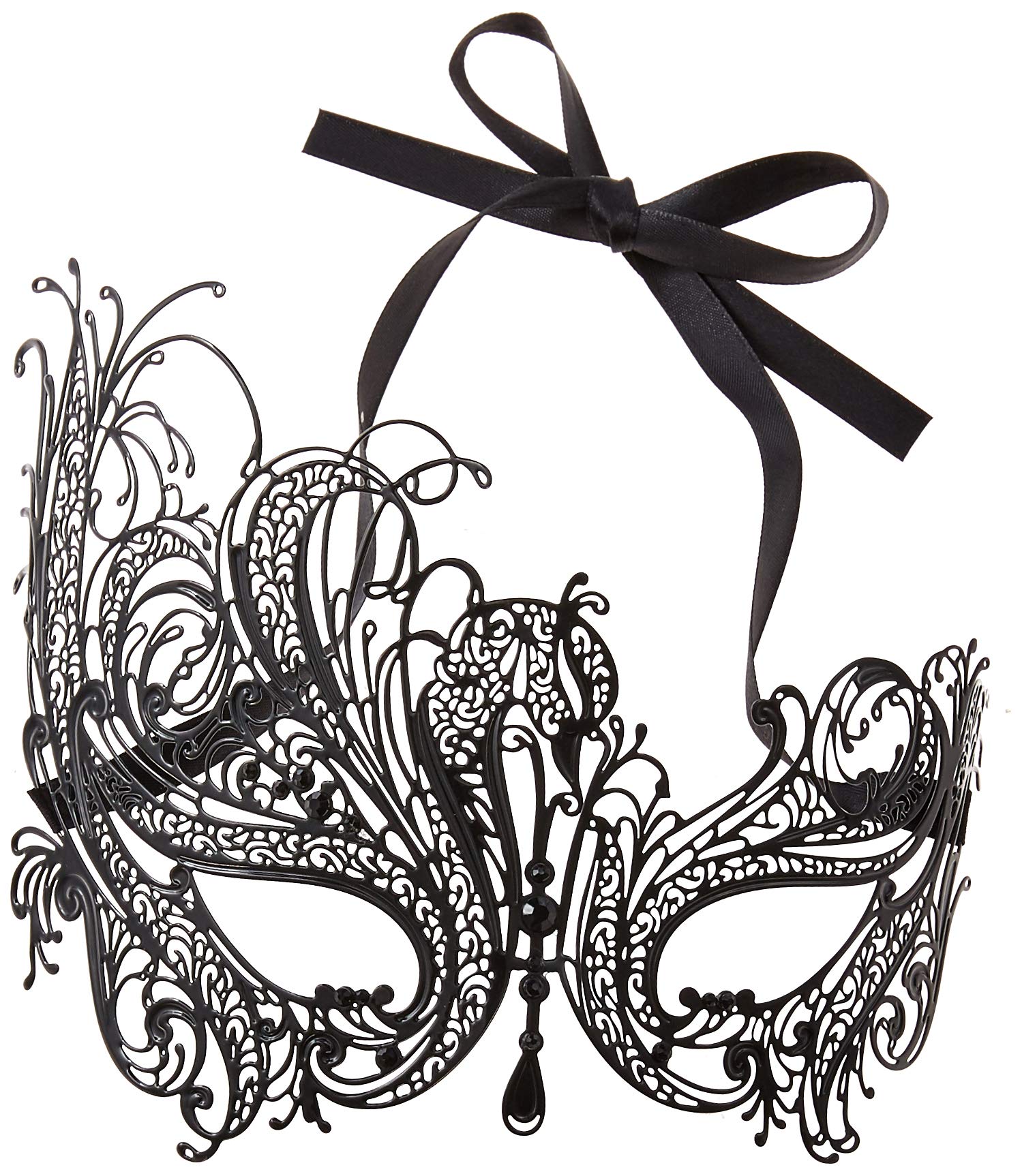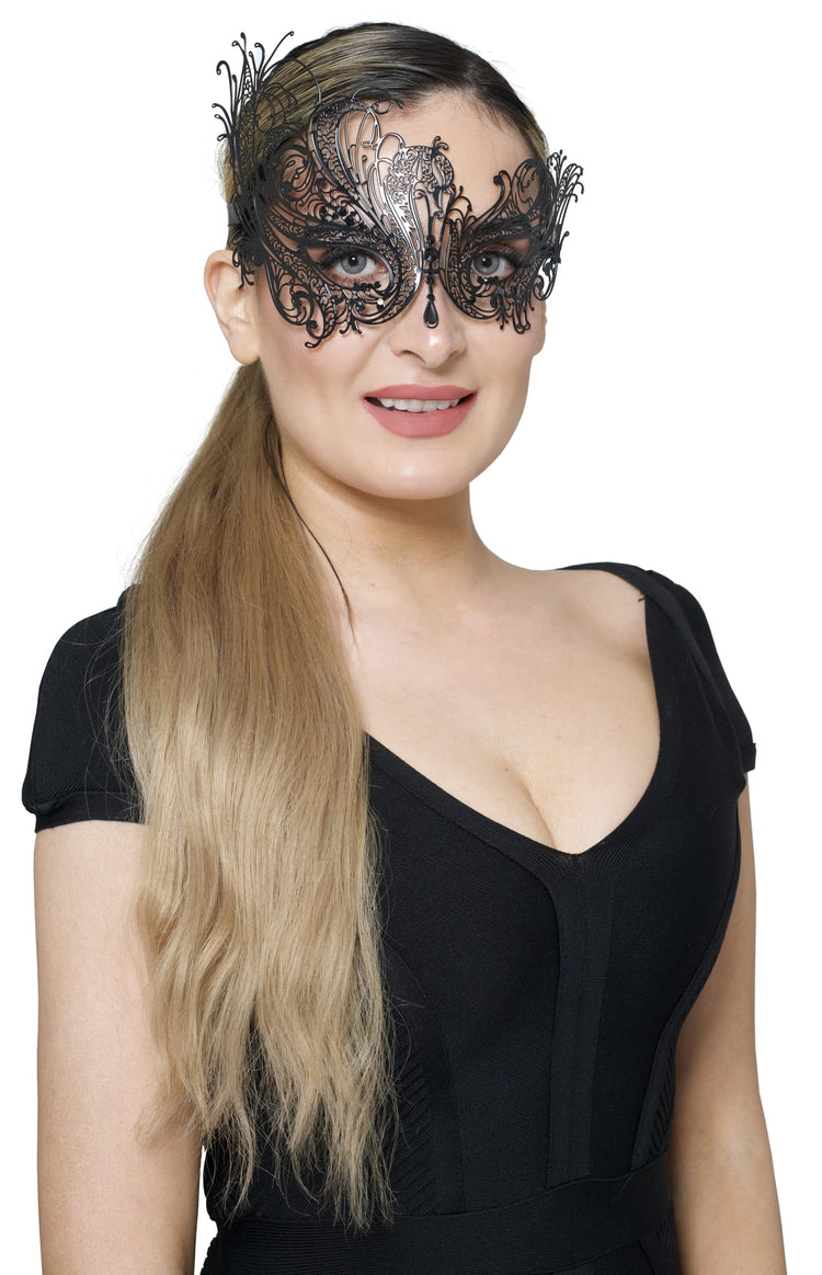 Metal Filigree Masquerade Mask for Women - Swan Style Mask with Rhinestones for Mardi Gras, Prom, Halloween & Venetian Party
